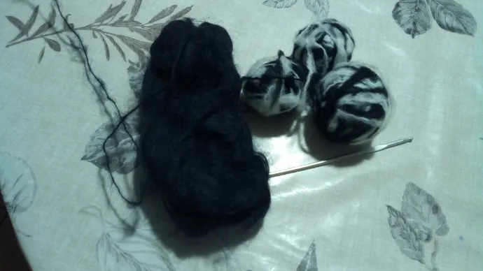 Связала внучке жилет для школы. Пряжа: черная - неопознанный тонкий лохматый мохер (не могу сказать, что пушистый) из старых запасов, белая с черной пестринкой -неопознанная пряжа типа мохера из старых запасов. Крючок № 4 .Рисунок простейший – 2ст. с накидом, 2 возд петли, на белом поле- 1ст. с накидом, 2 возд.петли