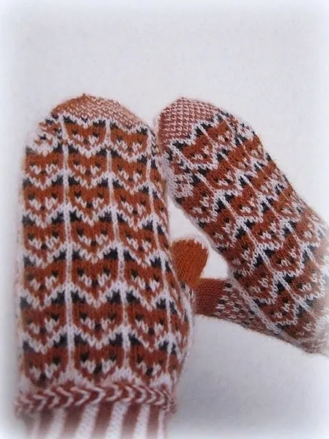 Варежки с лисичками, вяжем спицами