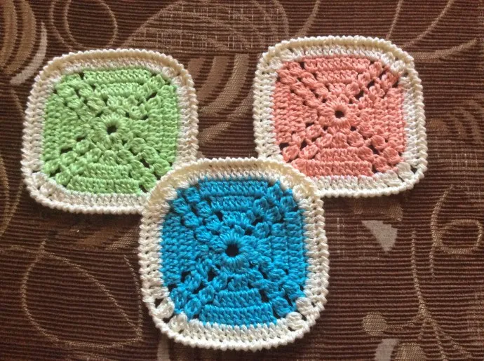 Навязала подставок под чашки и прихватки на сувениры к 8 Марта. Перепробовала много схем и остановилась на классическом бабушкином квадрате.