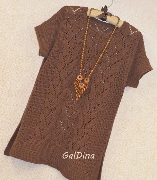 Туника с кружевным узором, вяжем спицами