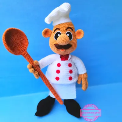Великолепный поваренок.Супер.Подскажите пожалуйста где можно описание найти.У меня сын поварешка))))Хочу ему связать.