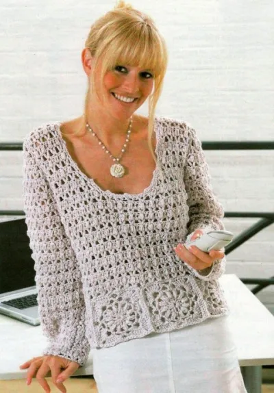 Жалко, что не указано с какой пряжи связана кофточка и номер крючка. ОБОЛДЕНАЯ КОФТОЧКА!!!