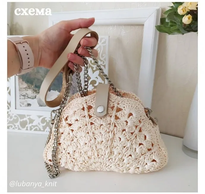 Сумочка "ракушка" из рафии, вяжем крючком