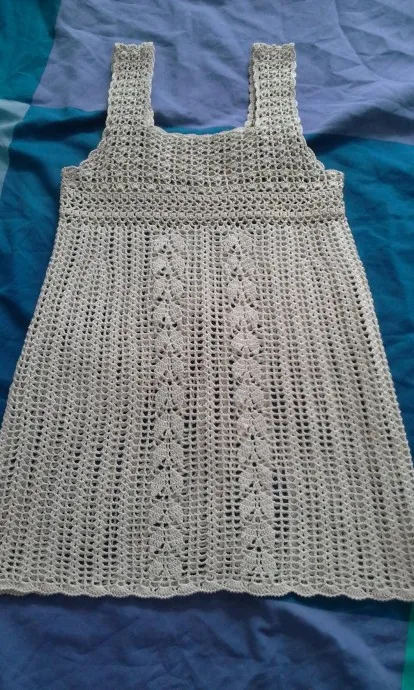 Добрый день! Мы с дочей усиленно готовимся к лету. Решила освоить комбинированные платья. Пряжа - чистый хлопок, но не знаю уже как называется, поскольку делала из остатков. Лиф выполнен рисунком"шаше...