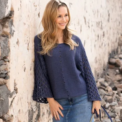 В связи с большим числом петель рекомендуем вязать на длинных круговых спицах рядами в прямом и обратном направлении.