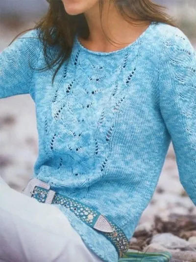 400 (450) 500 г бирюзовой меланжевой пряжи New Cotton Print (60% хлопка, 40% микроволокна, 140 м/50 г); спицы № 5; крючок № 4.
