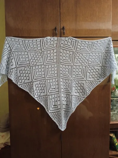 Дорогие рукодельницы, у меня готова ещё одна работа. Это моя первая ажурная шаль спицами.