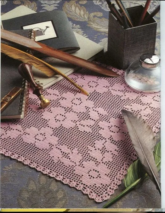 Квадратная салфетка "Примулы на столе", филейное вязание
