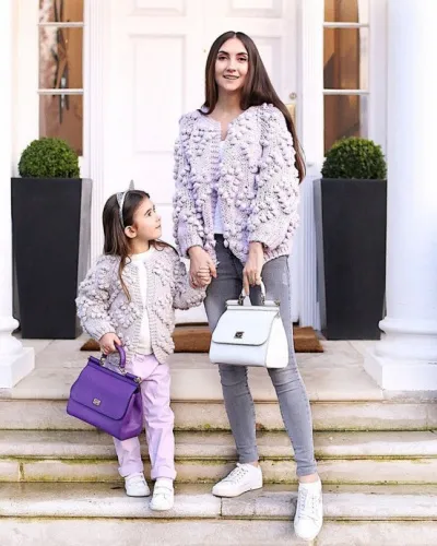 Увидела вот такое фото в интернете, парные изделия стиля "фемели лук", заинтересовало. Пусть и объемно, но на худенькой фигуре хорошо будет смотреться. В целом, в общем, мне очень понравилось. Но описания нет, может, кто-то визуально узнает этот узор или есть идеи, как его воплотить? Буду благодарна за подсказки.