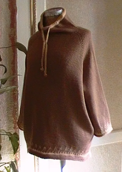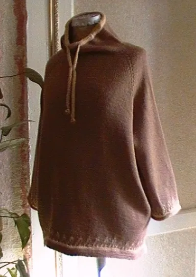 Чистая импровизация. Вязала на двух круговых спицах. Мне так удобней. Сверху. Высоту воротника. Разделила на 4 части петли. Схем в интернете много. Можно подобрать под себя. Отметила регланные петли. Сначала вывязала росток, чтобы удобно лежала горловина. Через ряд, с обеих сторон от регланных петель делала накиды, следующим рядом провязывала. Вязала нужную высоту проймы. Затем набирала для тушки дополнительные петли по бокам, для свободного облегания. Вязала по кругу спинку и перед какой хотела длины. Жаккард чисто символический, рассчитала по петлям. А потом рукава. Также по кругу. Петли которые набраны для тушки необязательно провязывать все, сколько надо. Просто рукав может быть широким. Можно прямо вязать, или постепенно провязывать по 2 вм., где, как-будто проходит шов, чтобы заузить.