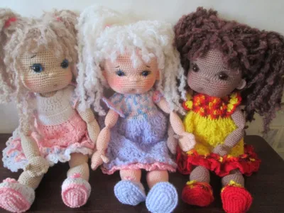 Позвольте показать мои работы за летний период. Их немного, но они есть. Это куколки крючком по МК Т. Азизуловой "Кукла Мари"