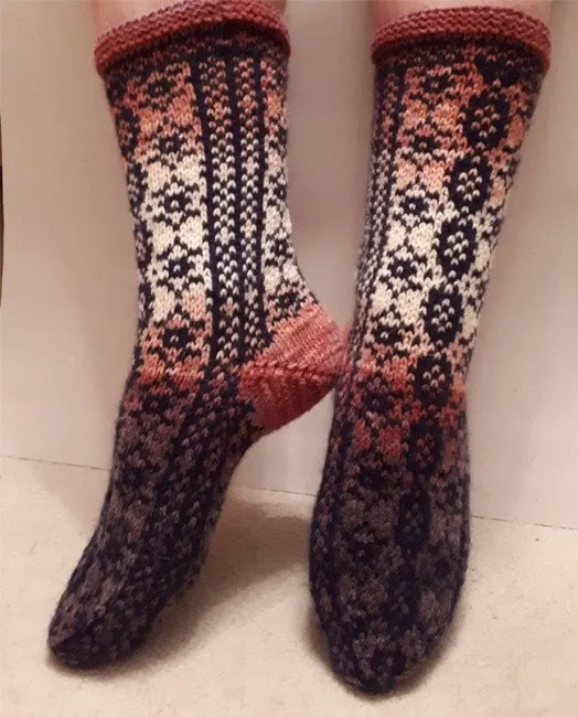 Выкладываю фото носочков со схемой. Схема моя собственная - делюсь. Пряжа шерстяная, секционная.