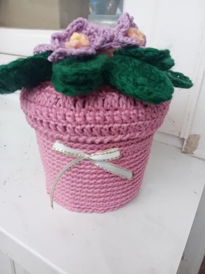 Этот горшочек связан крючком в подарок.