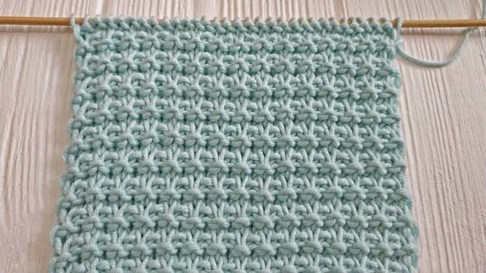 Простой вафельный узор спицами, описание узора (при поворотном вязании):