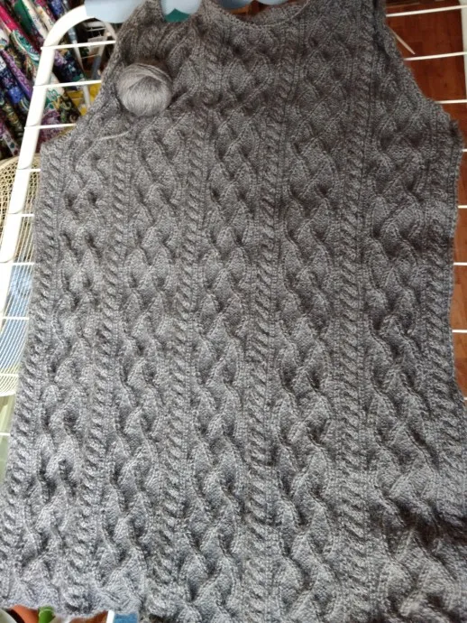 Вяжу в подарок любимому зятю(помните,подарки и чей то комментарий-надо брать!)И я приняла.Тем более,что на дочь мою он оказывает очень положительное влияние,чему я несказанно рада.Ну так вот,спинку я связала,начала перед ,пока все идет нормально,вяжу на паре круговых спиц разного диаметра,для планки взяла потоньше.Вроде бы полегче после уколов,надо продолжать..Обещала к дню рождения,а выйдет на Новый год..