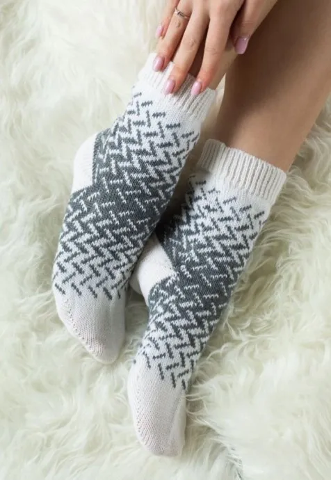 Внимание, в носках на фото вертикальный раппорт узора выполнен дважды.