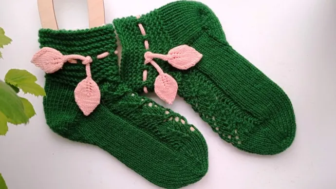Очень хотелось подружке носочки с листочками))) и тут, кстати, увидела топ Носки спицами от мыска «ВЕТОЧКИ» Irini Spiridopoulou и взяла оттуда узор. И вот что у меня получилось.