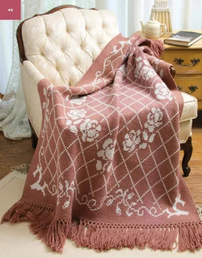 Плед крючком в технике тунисского вязания