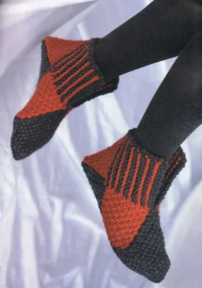 Связать тапочки из квадратов — хорошая идея. Вязание спицами — увлекательно, домашние тапочки спицами можно сделать за один вечер, сидя перед телевизором, или слушая хорошую музыку. Симпатичные закрытые тапочки, связанные простым узором «зерно», и «рис» согреют ноги, и добавят комфорта. Тапочки на 2 спицах, обвязка деталей крючком. В конце работы детали сшиваются, как на схеме. Размер 36-39.