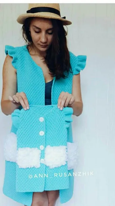 Тогда проще: по пройме первый ряд столбики без накида, а со второго из одной петли вывязывайте по 2 (можно через петлю по две — зависит от желаемой пышности), в третьем ряду как во втором, а далее делаете скос по бокам (можно две вместе), а остальное вяжете в каждую петлю по 1 столбику.