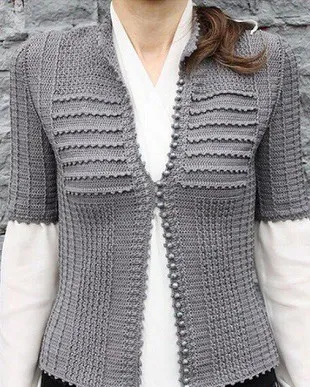 Серый жакет крючком