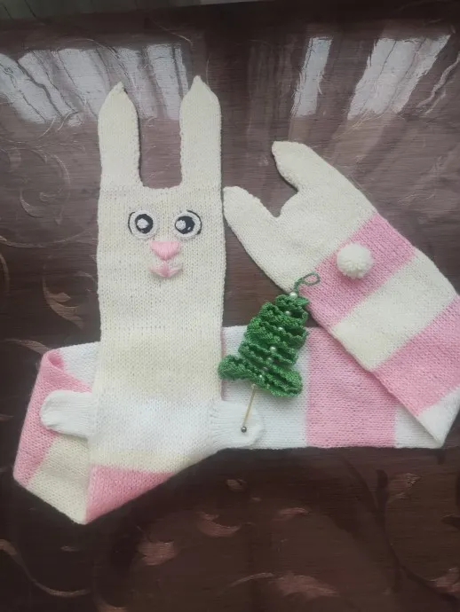 Детский шарфик "Зайчик- кролик", Подарок к Новому году. Символ нового 2023 года.