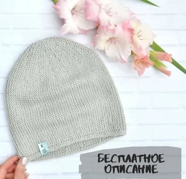 Шапочка, связанная поперек платочной вязкой