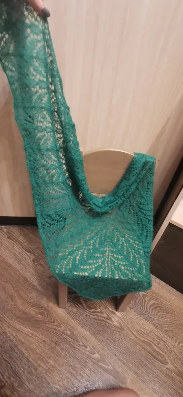 Палантин из кид мохера на шелке вязала спицами №4 от середины.После вто и блокировки размеры 70см. на 190см.Схемы узоров брала в интернете в свободном доступе.