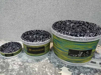 На три органайзера ушло три мотка веревок, немного декоративной тесьмы и остатки ткани.
