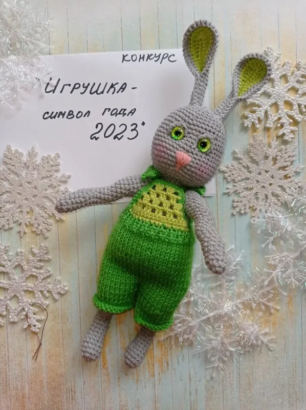 Представляю Вам добродушного зайца-инопланетянина. Игрушка связана к конкурсу. Рост зайчика 32 см. Использовалась пряжа YarnArt Jeans, Alize Baby Wool, Пехорка Детский каприз, стеклянные глазки и наполнитель для игрушек.