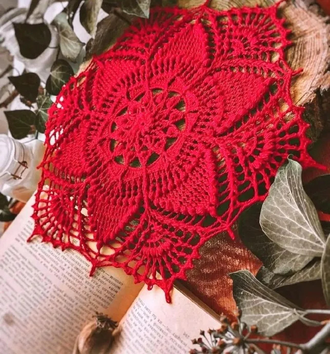 Закидайте меня тапками и осуждениями, но схема не подходит к предложенной салфетке, возможно автор переделала схему по ходу вязания, а еще мне кажется что не хватает значительного числа рядов