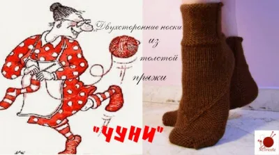 Двухсторонние носки из толстой пряжи "ЧУНИ". Спицами.