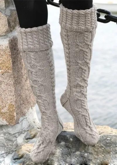 Теплые вязаные гольфы с узором из кос