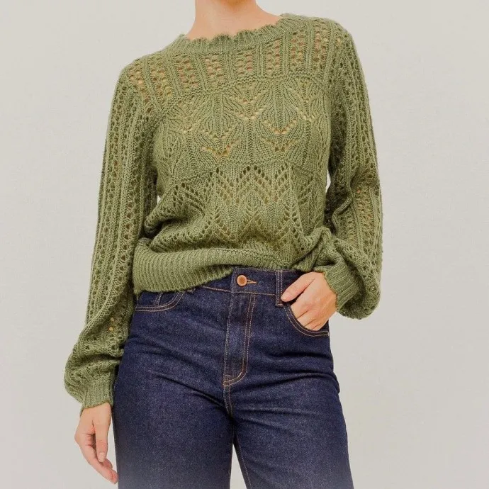 Джемпер с сочетанием ажурных узоров