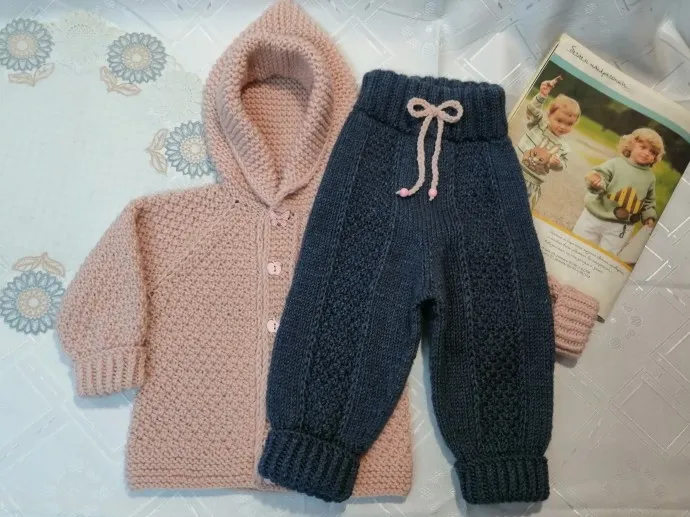 Это второй пост за сегодня, который очень похож на первый, но мне хочется показать вам этот костюмчик, который я связала на заказ для девочки с красивым именем Ефросинья, возможно именно эта модель вас вдохновит и вы начнете творить. Я вязала из пряжи ALIZE SUPERLANA MIDI в100 гр.170м. Состав 75% акрил, 25% шерсть. Вязала спицами №2 резинки и спицами №4 основное полотно. На штанишках и кофточке вывязан росток для удобства малыша. Кофточка цвет 203 джинс меланж, а штанишки цвет 523 кристально розовый. Пряжа не колючая и тактильно приятная. По расходу пряжи: на кофточку ушло почти 3 мотка, на штанишки 2 мотка. В изделии я использовала лицевую гладь, узор "Жемчуг" и платочную вязку. Планку вязала с двойной кромочной. Желаю всем хорошего настроения и приятного просмотра.