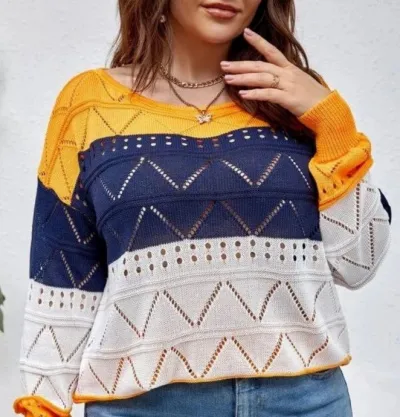 Джемпер в трех цветах с узором «галочки», вяжем спицами