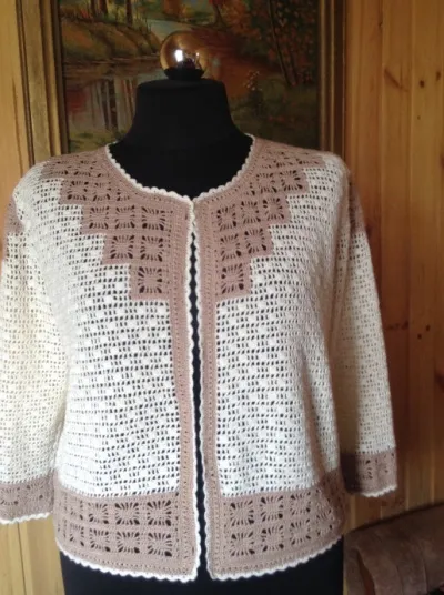 Оригинальный филейный жакет крючком