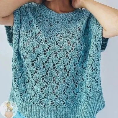 Топ со спущенным плечом красивым узором спицами