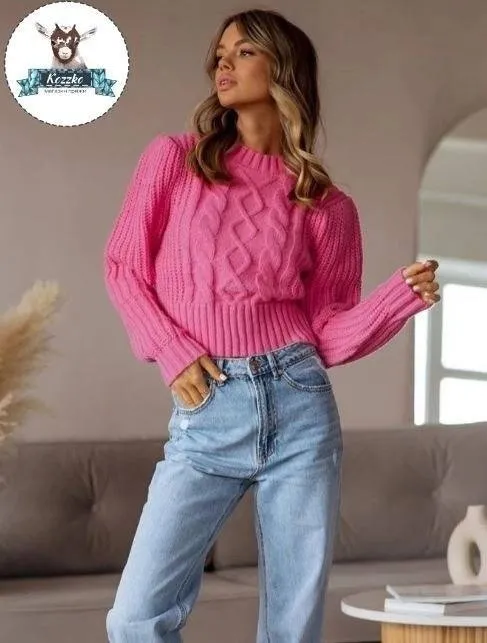 Джемпер с узором из кос спицами