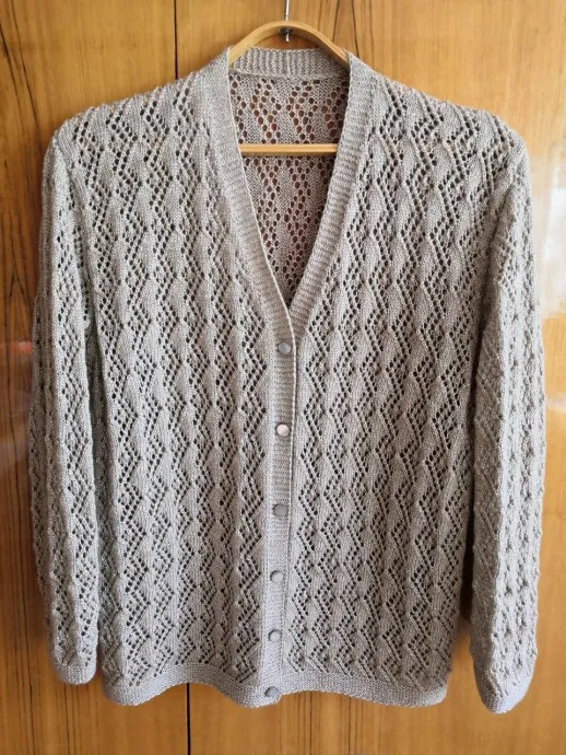 Откопала пряжу из маминых запасов. Поискала в интернете что связать из буклированной пряжи. Нашла видео где вязали кардиган из двух прямоугольников. Интересная идея, но мне он показался слишком просты...