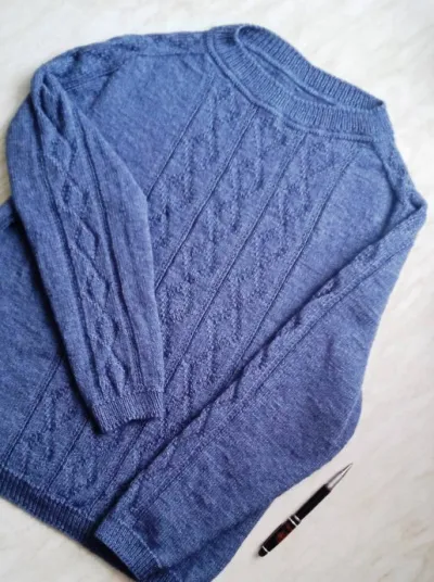 Отличный джемпер! Рисунок удачный, цвет приятный. Я тоже люблю эту пряжу. Спасибо за схему узора, возьму на заметку. И реглан-погон и подрезы выполнены достойно!