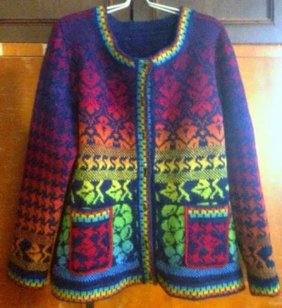 Красотищааааа! на ВДНХ я заходила в магазинчик перуанское вязание, мнеяркостью красок жакеты напомнили его. Супер, очень нравится.