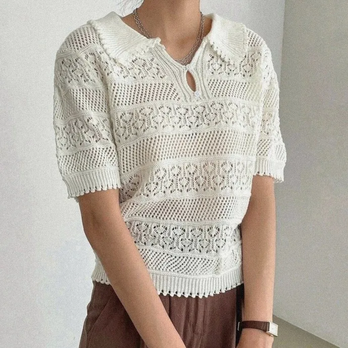 Летний джемпер с коротким рукавом спицами