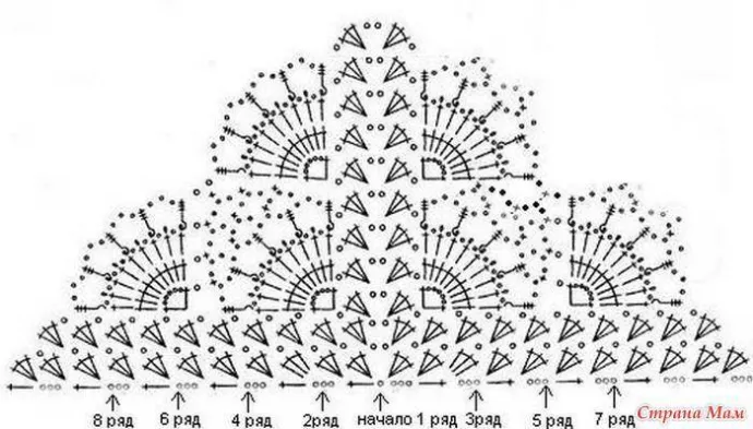 Бактус вяжется платочной вязкой. Начинается вязание от угла с 3-х петель.