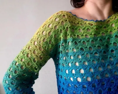 Джемпер из пряжи секционного крашения дырчатым узором