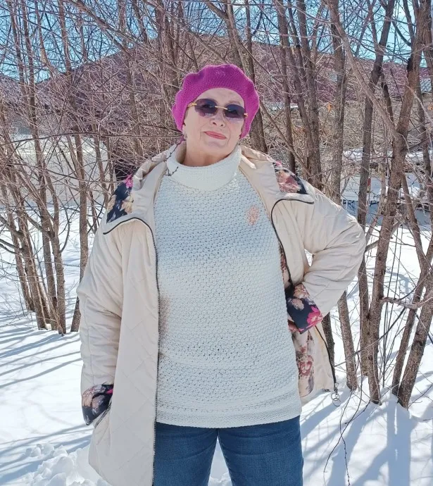 Здравствуйте дорогие вязальщицы и гости - любители вязанных изделий, представляю свитер, просто классика, но необычность в том, что резинки я выполнила простой платочной вязкой, основное полотно "Тканый" узор. На 50- 52 размер ушло 680 грамм, спицами №3, пряжа стоковая, метраж, состав не известен. Вязала плотненько, чтобы было тепло. Плечевые скосы и вырез горловины вязала укороченными рядами, петли не закрывала оставляя на вязальной булавке. В дальнейшем выполняла плечевой шов по открытым петлям без рабочей нити и потом уже вязала горловину. Свитер получился очень теплый, уютный, дома на фото показывает желтизну, а на улице видна белоснежность.