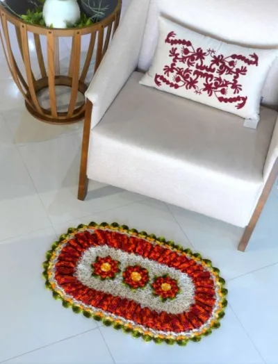 Коврик "Деликатный" крючком от бразильской мастерицы Diandra Schmidt. При вязании крючком №4 мм размеры готового изделия примерно составят 75 x 50 см. Как Вам изыски заморских мастериц?