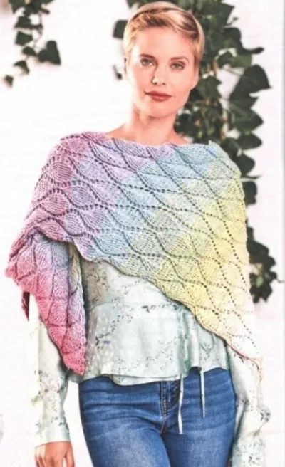 Шаль с узором листочки крючком