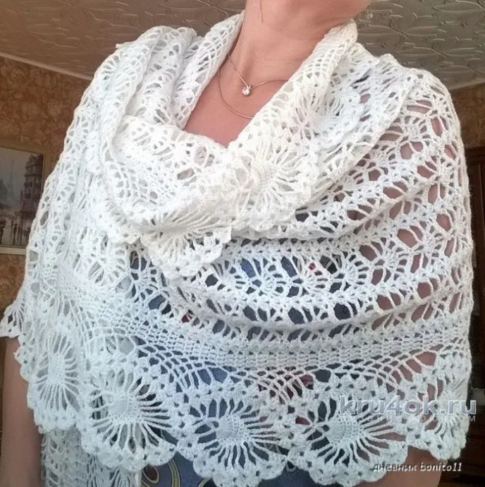 Нежный, аккуратный, очень романтичный палантин! Унесла в свои закладочки