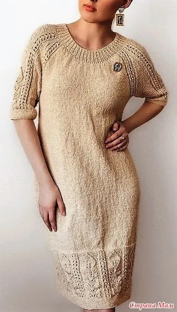 Платье спицами, вяжем снизу вверх